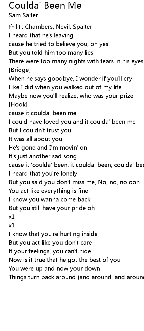 | cause it ' coulda' been, it coulda' been, coulda' been me | |
