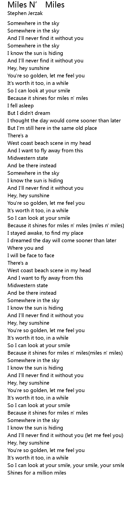 Miles N' Miles Lyrics