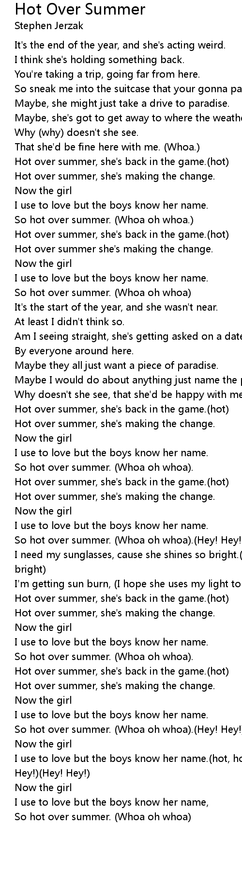 So hot over summer. (Whoa oh whoa).(Hey! Hey!)(Hey!,Hey!) |