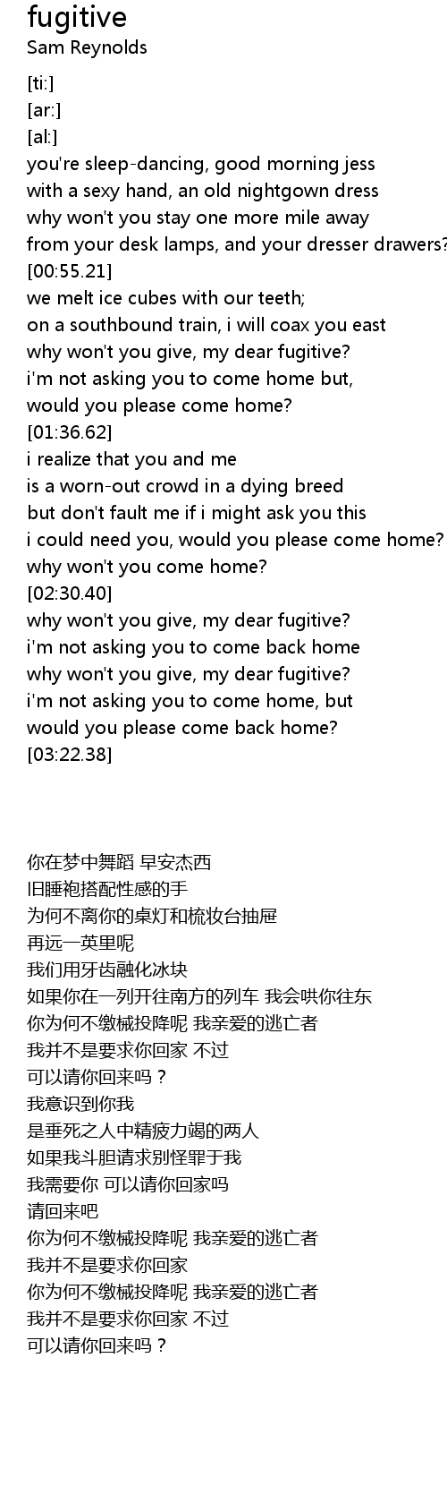 why won't you give, my dear fugitive? |