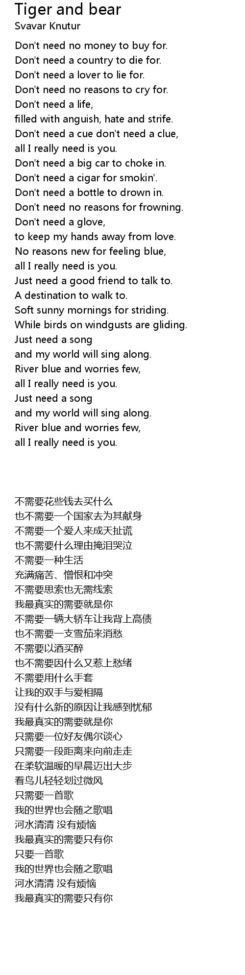 Don't need no reasons to cry for. |