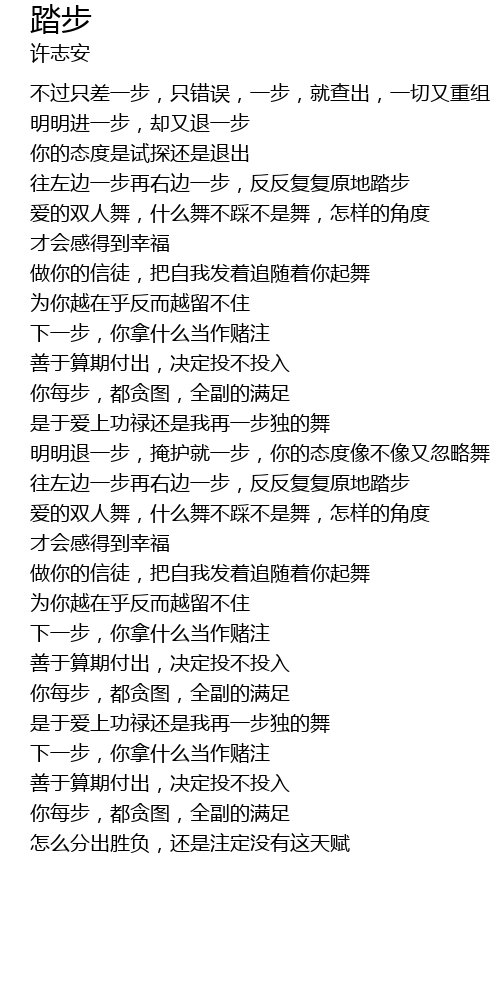 | [01:13.88] | 往左边一步再右边一步,反反复复原地踏步 |