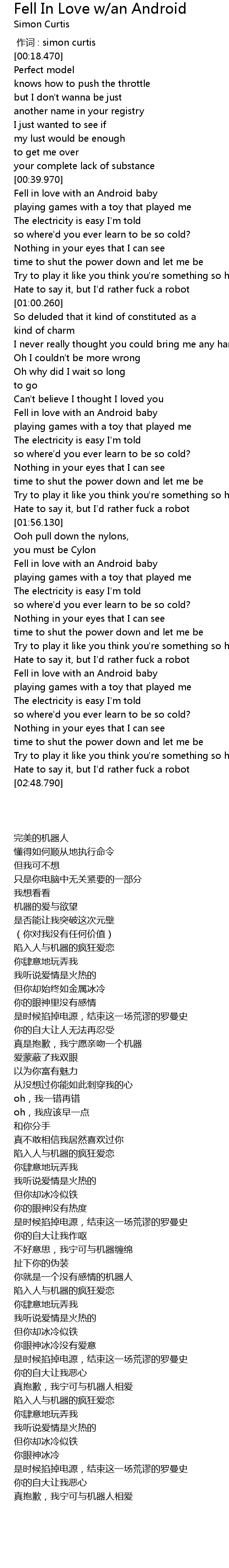 | [02:08.190] | Fell in love with an Android baby |