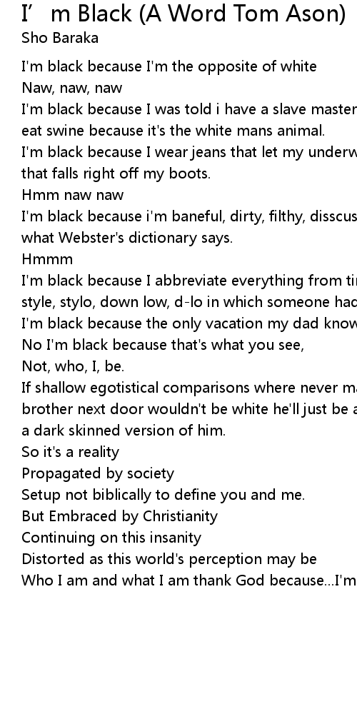 I’m Black (A Word Tom Ason) I' m Black A Word Tom Ason Lyrics