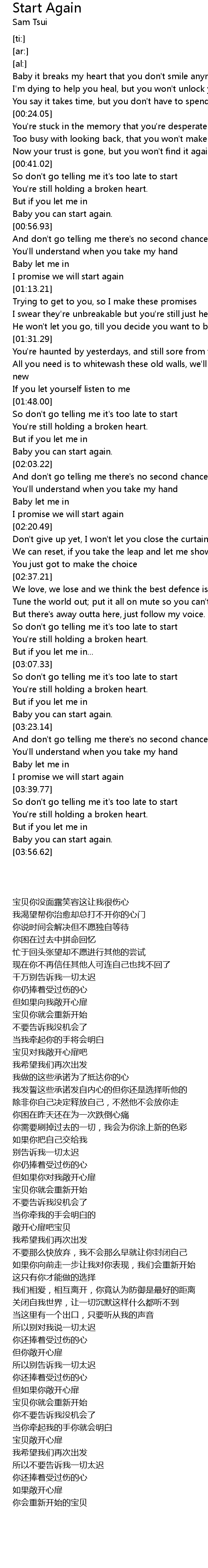 [03:19.05] Baby you can start again.