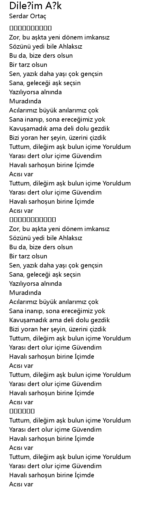 | [01:37.20] | Tuttum, dile im a k bulun i ime Yoruldum |