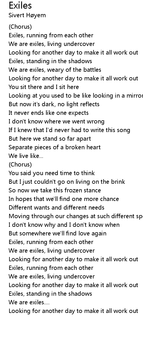 We are exiles, weary of the battles |