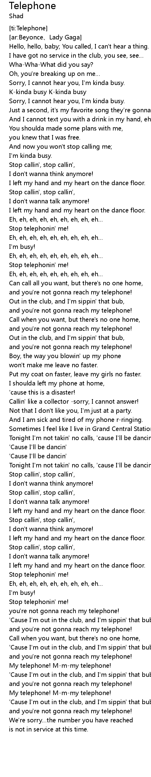| [03:06.57] | and you' re not gonna reach my telephone! |
