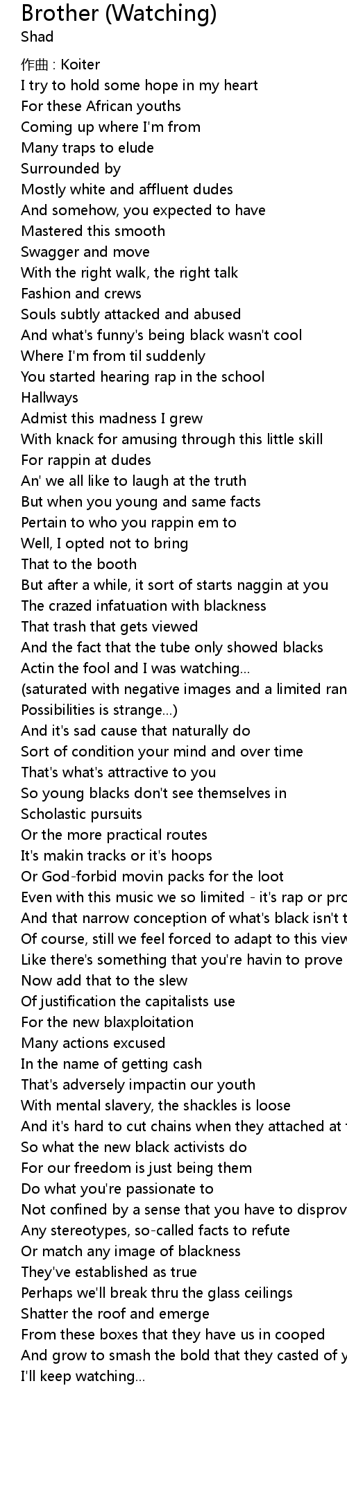 | Song | Brother (Watching) |