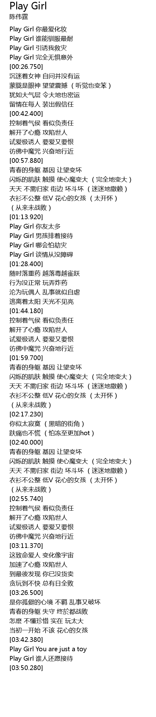 | [03:46.670] | Play Girl 谁人还愿接待 |