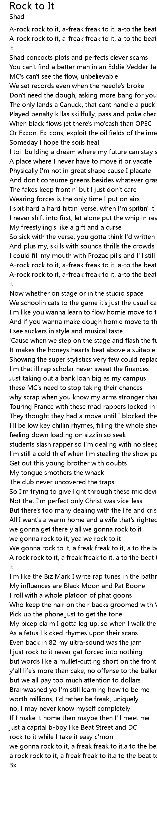 A rock rock to it, a freak freak to it, a to the beat to it, this is how we do it |