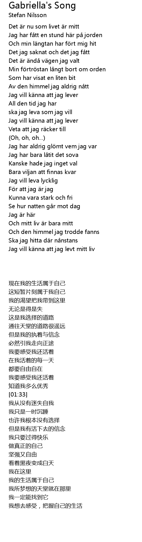 | [01:20] | Jag vill k nna att jag lever |