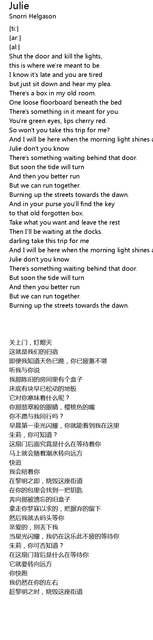 | [01:14.88] | Julie don' t you know |