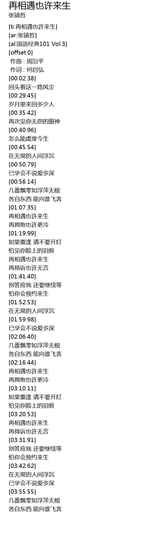 | [03:37.45] | pà nǐ huì yù yuē lái shēng |