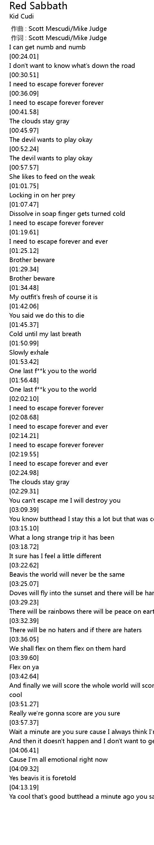 | [00:01.00] | 作词 : Scott Mescudi/Mike Judge |