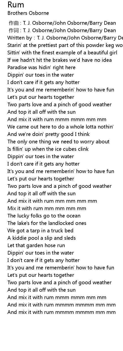 | [02:13.94] | Mix it with rum mm mm mm mm |