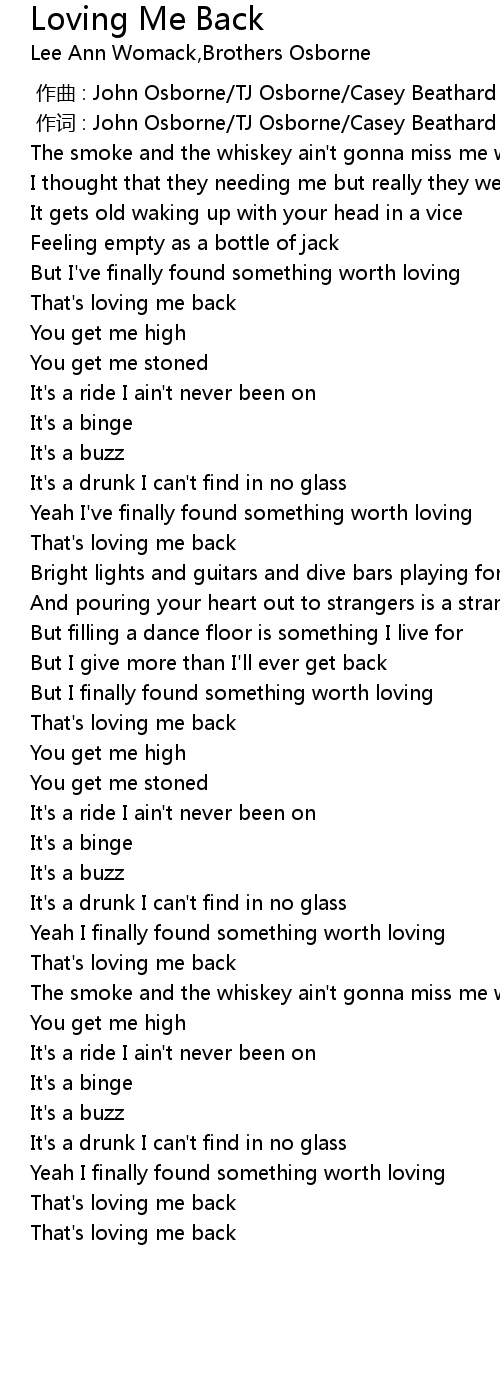 | [00:01.00] | 作词 : John Osborne/TJ Osborne/Casey Beathard |
