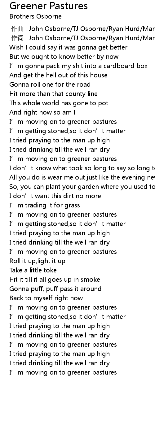 | [00:01.00] | 作词 : John Osborne/TJ Osborne/Ryan Hurd/Maren Morris |