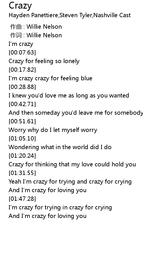 | [01:40.14] | And I'm crazy for loving you |