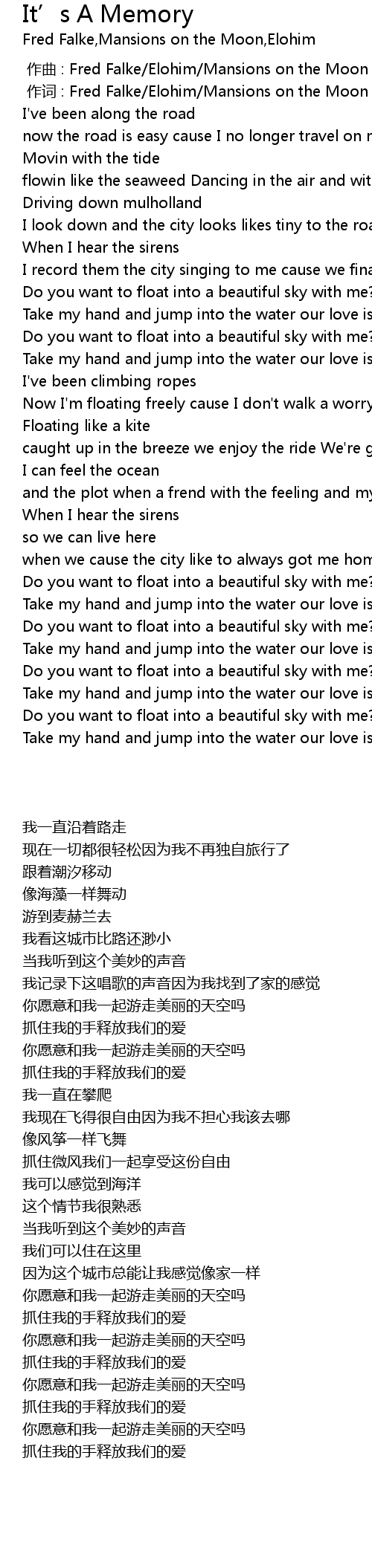 | [00:00.00] | 作曲 : Fred Falke/Elohim/Mansions on the Moon |
