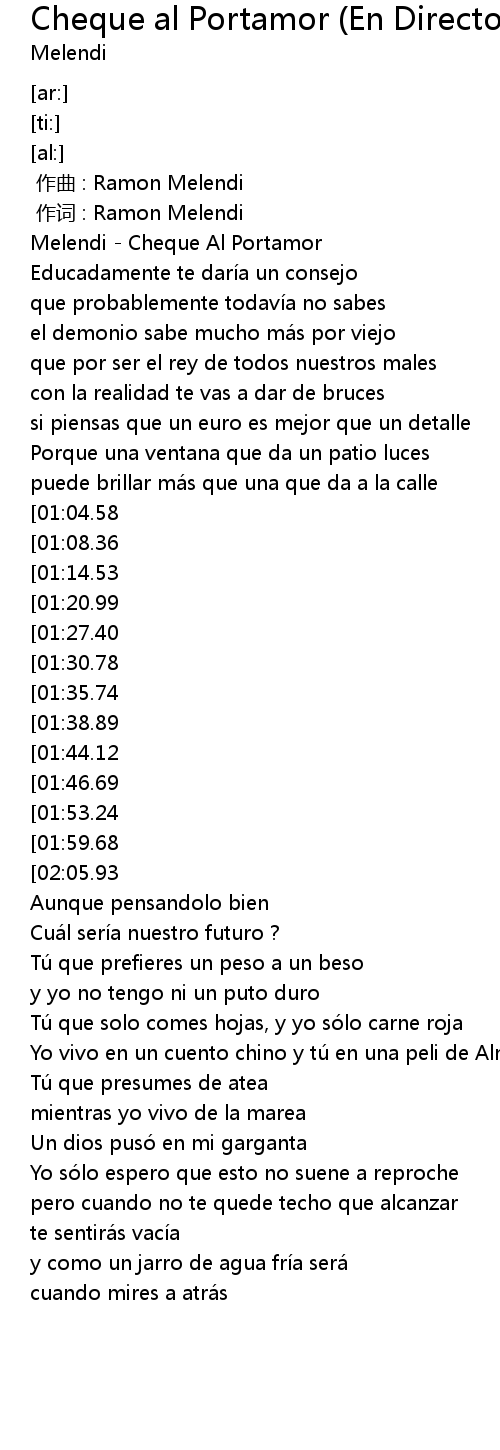 | [00:00.00] | Melendi Cheque Al Portamor |