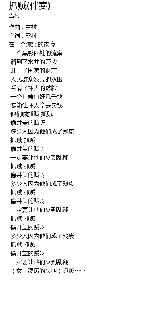 | Song | 抓贼(伴奏) |