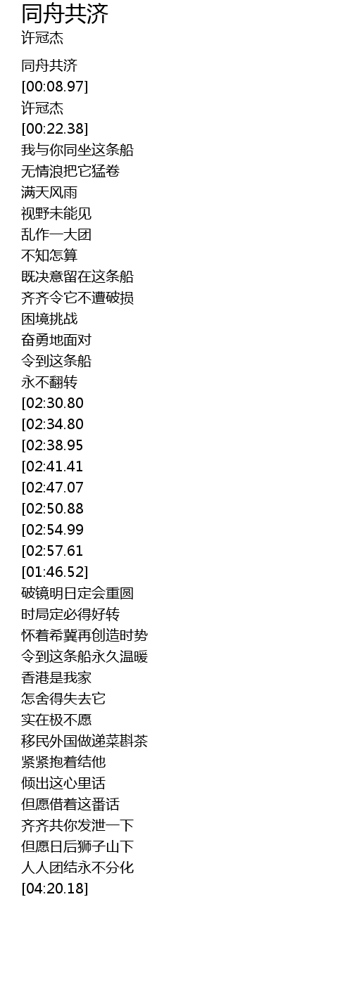 | [03:04.25][02:30.80][01:08.14] | 香港是我心 |