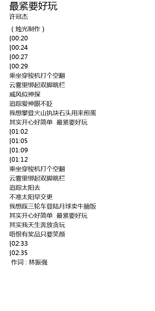 | [02:02] | 其实开心好简单 最紧要好玩 |