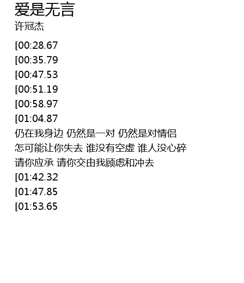 | [02:58.91][00:58.97] | 情似止水 不知心里过去 真的我愿意 |