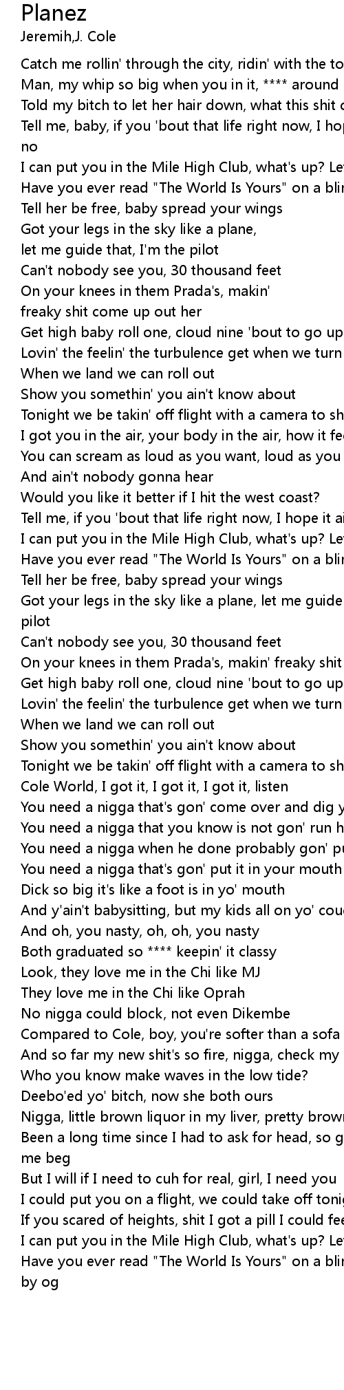 | [02:44.88] | Cole World, I got it, I got it, I got it, listen |