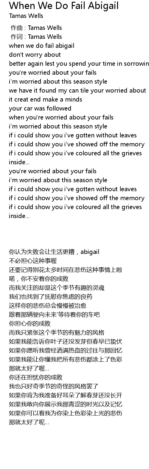 | [00:00.00] | zuò qǔ : Tamas Wells |