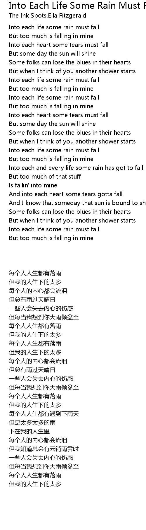 Into Each Life Some Rain Must Fall Lyrics