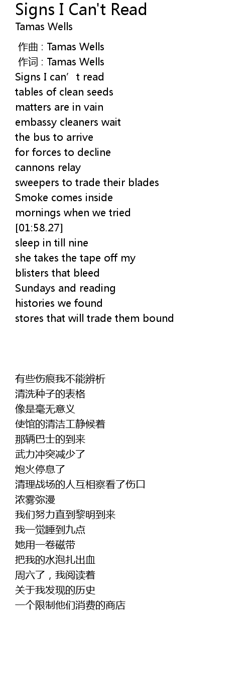 | [00:56.44] | Signs I can' t read |