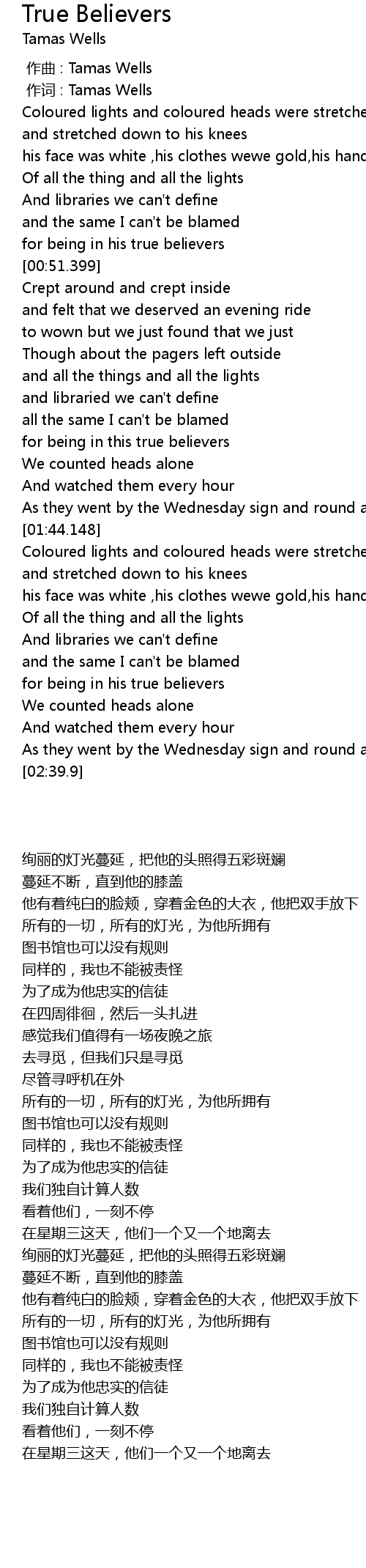| [00:00.00] | zuò qǔ : Tamas Wells |