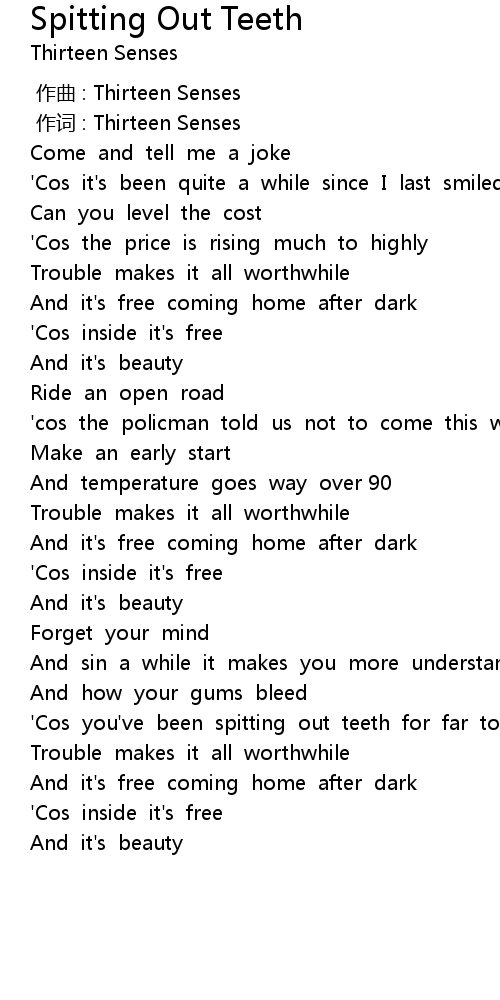 | [03:34.79] | ' Cos you' ve been spitting out teeth for far too long |