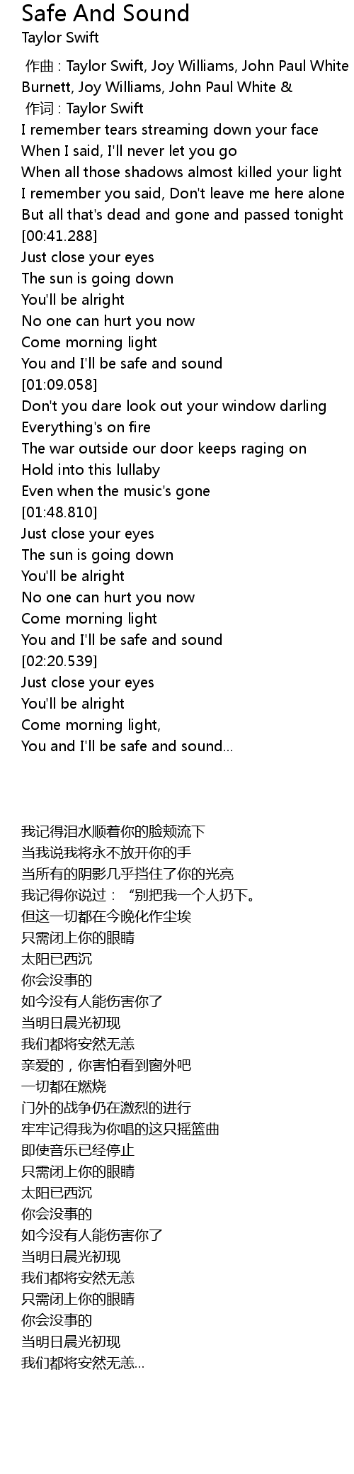 | [00:00.00] | 作曲 : Taylor Swift, Joy Williams, John Paul White & T Bone Burnett, Joy Williams, John Paul White & |