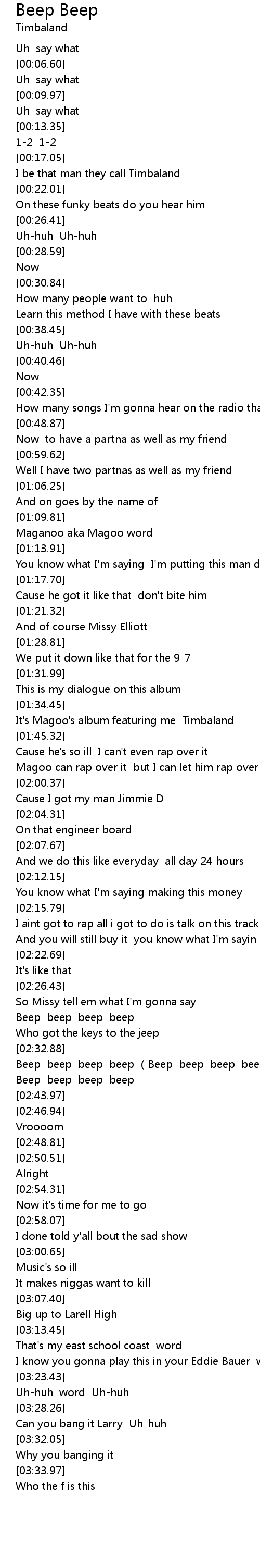 | [02:35.99] | Beep beep beep beep (Beep beep beep beep beep beep) |