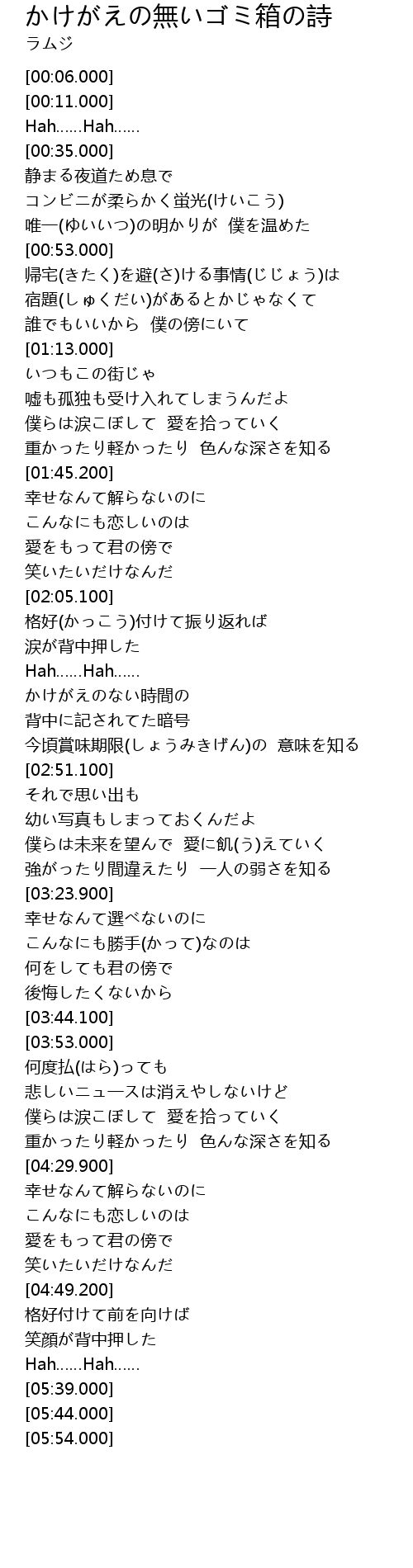 | [00:40.000] | コンビニが柔らかく蛍光(けいこう) |