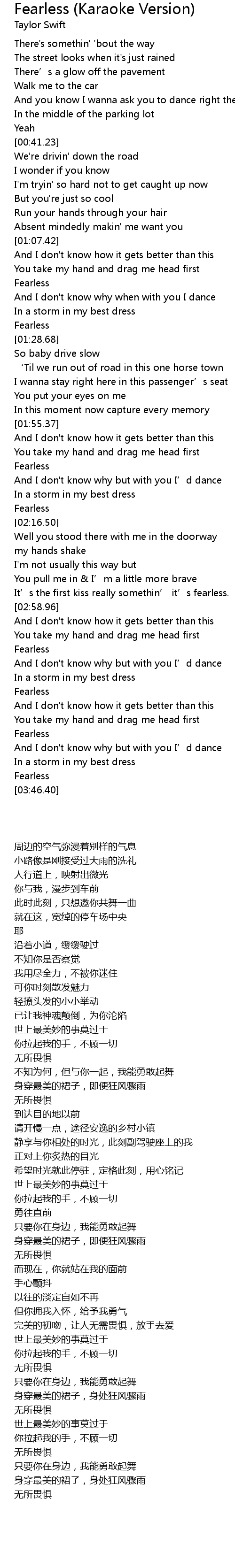 | [02:47.90] | It' s the first kiss really somethin' it' s fearless. |