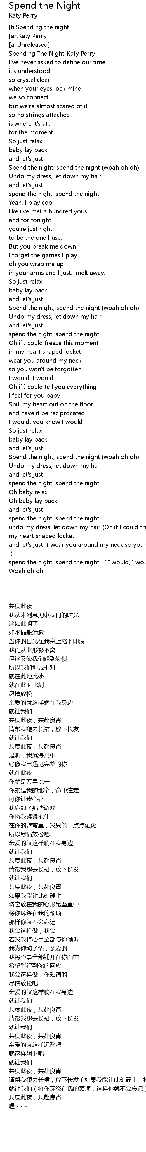 | [00:07.97] | Spending The Night-Katy Perry |