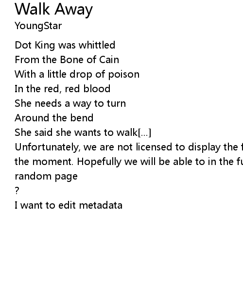 | Song | Walk Away |