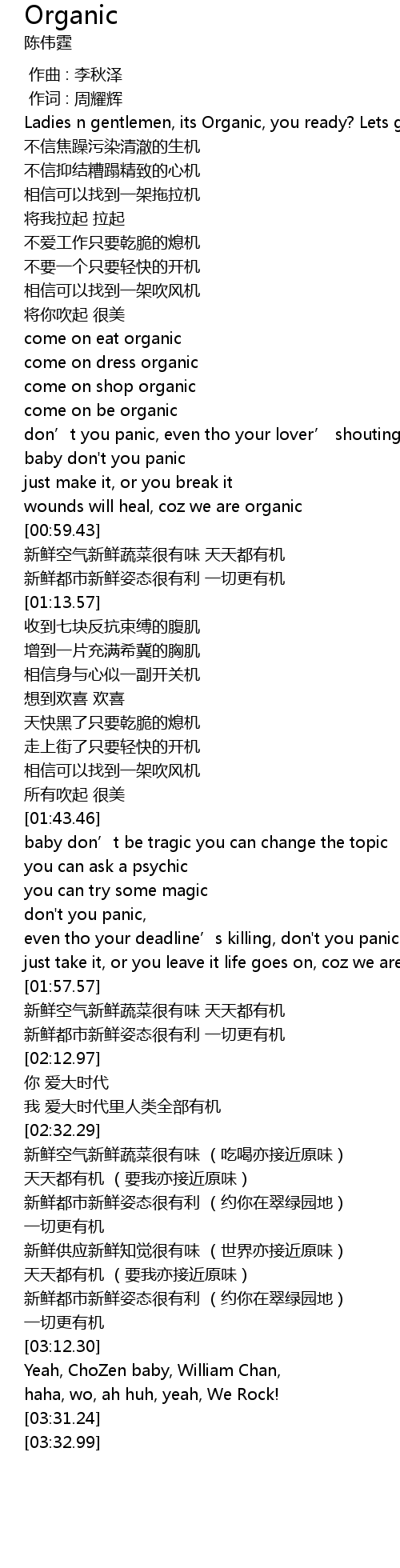 | [00:50.43] | come on be organic |