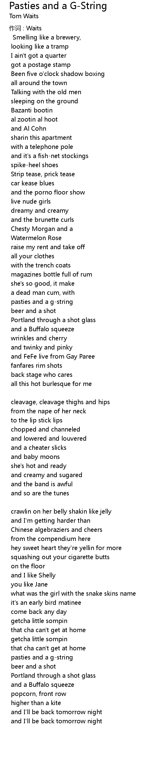 | Song | Pasties and a G-String |