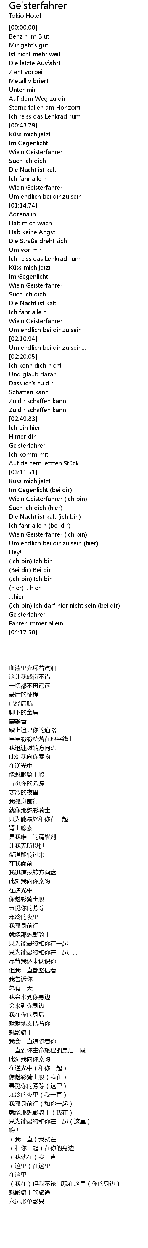 | [03:36.04] | Wie'n Geisterfahrer (ich bin) |
