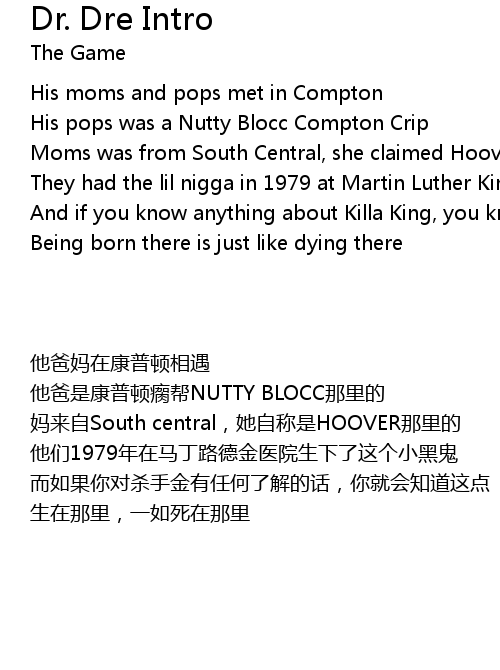 | [00:09.59] | They had the lil nigga in 1979 at Martin Luther King hospital |