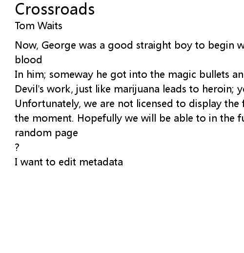 | Unfortunately, we are not licensed to display the full lyrics for this song at the moment. Hopefully we will be able to in the future. Until then, how about a | |