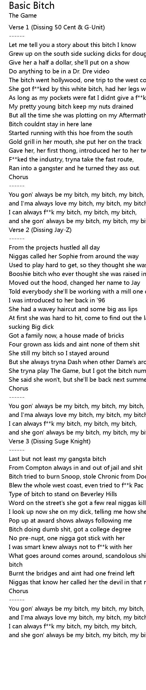 I can always f**k my bitch, my bitch, my bitch, |