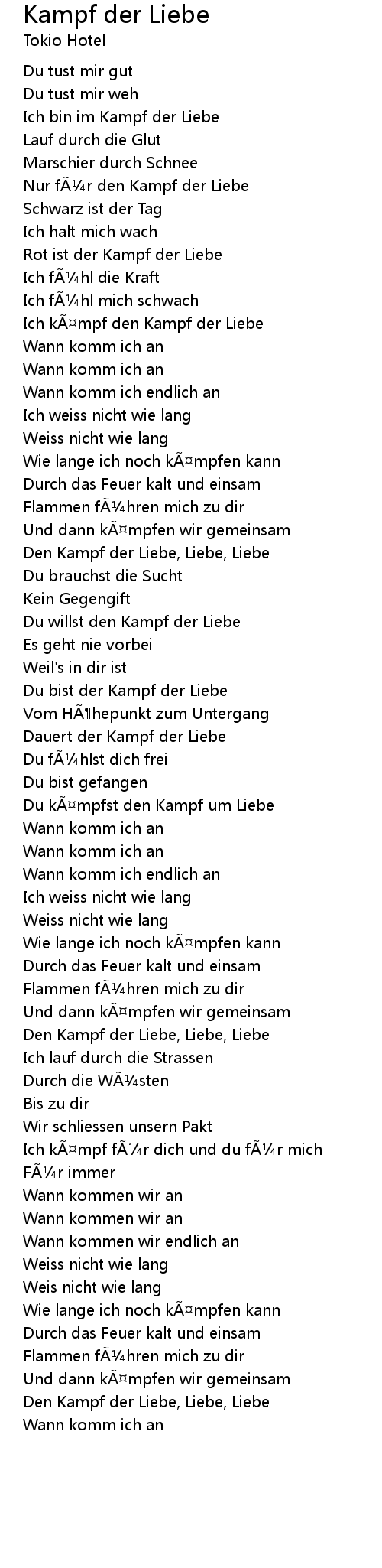 | Den Kampf der Liebe, Liebe, Liebe | |