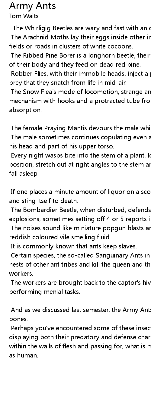 And as we discussed last semester, the Army Ants will leave nothing but your bones.