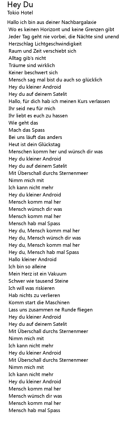 | Hallo, fü r dich hab ich meinen Kurs verlassen | |